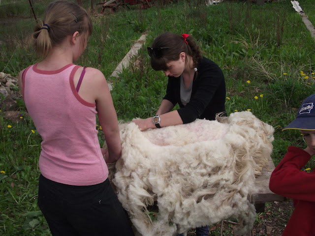 Rytą pradėjom garsiai- man dėmesio trūkumas buvo, kol pusryčius ruošiau, o Rimvydas Miną vedžiojo, jaunimas pešėsi dėl geresnės vietos prie teliko, tai pasiautėjau mažumėle. Tada vienas kitas nužliumbėm mažumėle, Rimvydas mane nuglostė grįžęs, susitaikiau su tais kuriems labiausiai kliuvo, draugiškai virtuvę sutvarkėm ir šokom mašinon teisingai šeštadienio praleist. Aplankėm senelius. Nurengėm avytes:) Tuo pačiu ir laužo patiekalų sezoną atidarėm- prikepėm bulvių su lašinukais, folijoje, skaniems, kaimiškiems pietums. Nušukavom siaubingai besišeriančią Miną (pagaliau gal namie apsirengti tamsius rūbus bus galima neišėjus už laukųjų durų:)) ) Išbučiavom kaimo močiutę ir padėkojome, kad tokį gerą vyrą ir tėtį mums užaugino. Suvalgėm visus senelių sausainius ir dešrą. Elektrinį piemenį avytėms naujai ištiesėm (ohoho kokią didžiulę ganyklą dabar turės!). Miną auklėjom, kad aviganio nevaidintu. Pasišaipėm iš nupešiotų vištų (vištikirpis pas jas turbūt neseniai buvo:D- paukštyne tokias pardavinėja, dabar mylėsim, skaniai maitinsim, laukan pasivaikščiot išvesim ir bus gražuolės, šaunuolės, gal ir kiaušinį vieną kitą sudės, kol kas boikotas:) ) ) Nukaitom žandus saulėje. Vakare sužvarbom...... O kapinėse stabtelėję našlaičių daug daug prisodinom:)